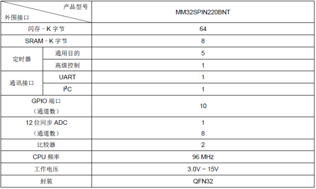 MM32SPIN220B產品功能和外設配置