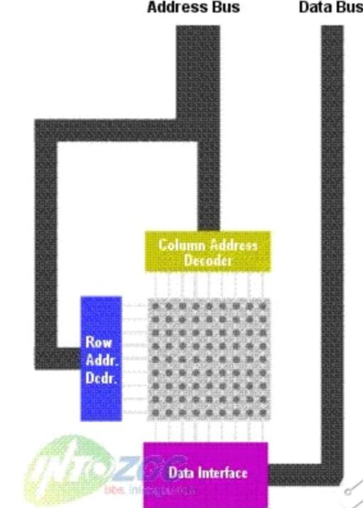 需要注意的是RAM內(nèi)的部存儲信息的矩陣并不是一個正方形的,也就是行和列的數(shù)目不是相同的--行的數(shù)目比列的數(shù)目少(DRAM)。