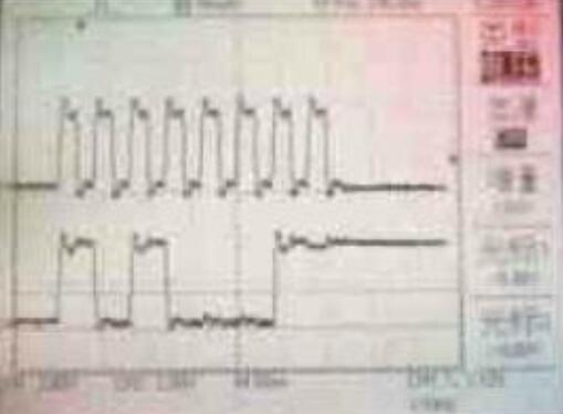將示波器的通道1連接到寫使能信號(hào),通道2連接到數(shù)據(jù)端D7。如圖1 所示,上方的波形為通道1接收的數(shù)據(jù),下而的波形為通道2接收的數(shù)據(jù)。設(shè)計(jì)輸入向量測(cè)試,當(dāng)?shù)刂窞镺OO時(shí),將片選端CS置為低電平,圖1 中,A區(qū)WT=*0”,RD=“1“,RD= “0”,讀出寫入數(shù)據(jù) 為“0”; B區(qū)WT=“1”,數(shù)據(jù)為“0”; C 區(qū)WT=“0”,RD=“1”,寫入數(shù)據(jù)為“1”D 區(qū)WT-“1”,RD-“1”,為了更好地觀察讀出“1”時(shí)端口的電平變化,該段不進(jìn)行讀寫,在輸出端口上加弱的低電平信號(hào); E區(qū)WT=“1”,RD=“0”,讀出數(shù)據(jù)為“1”,可明顯地看到讀出數(shù)據(jù)“1”的過(guò)程。從圖中可以看到數(shù)據(jù)“0”和“1”被成功地寫入和讀出。
