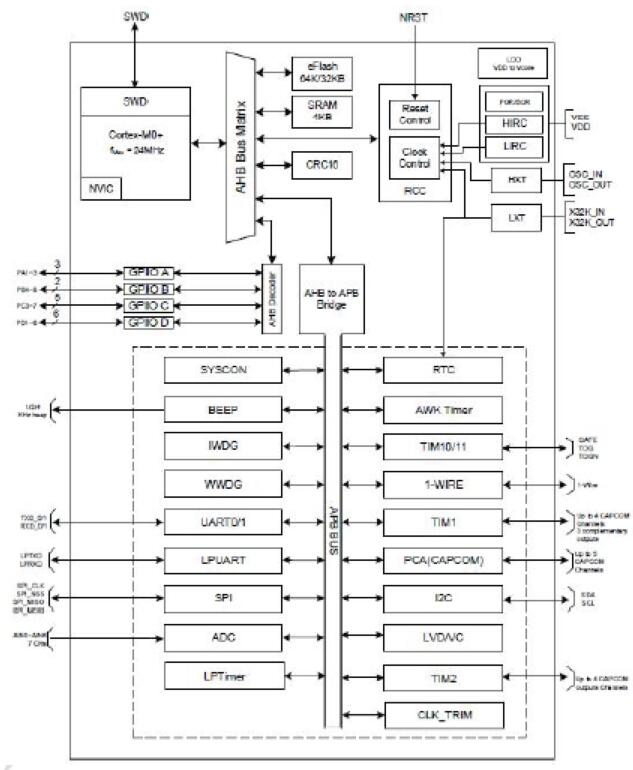- 32 位ARM®Cortex-M0+處理器內(nèi)核,最高工作頻率可達(dá)24MHz